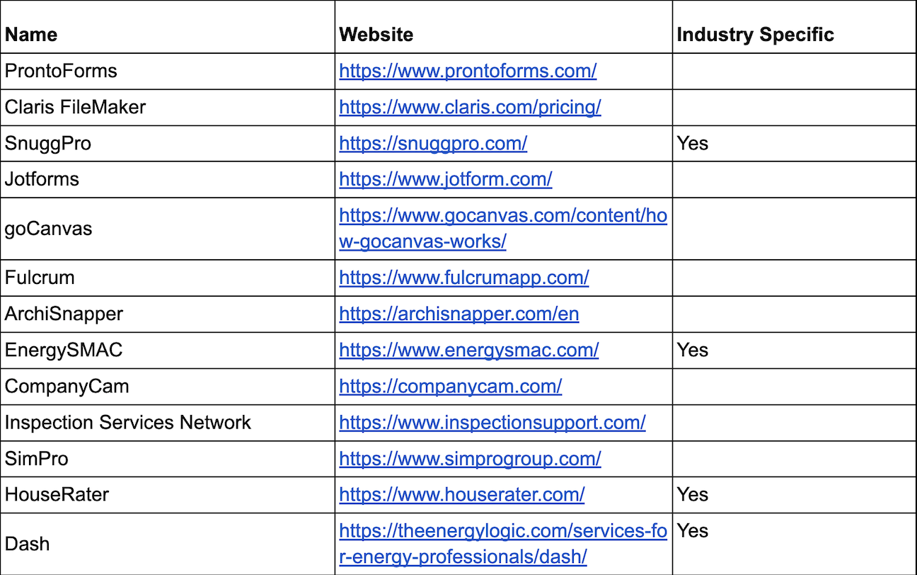 Most rating companies have 2-3 types of software core to delivering ratings - a business and project management tool, an inspection application, and Ekotrope RATER (we hope you all have RATER 😉). Each of these types is implemented with one or more software solutions (I’m specifically excluding accounting software, HR, etc software that is somewhat more generic to all businesses).